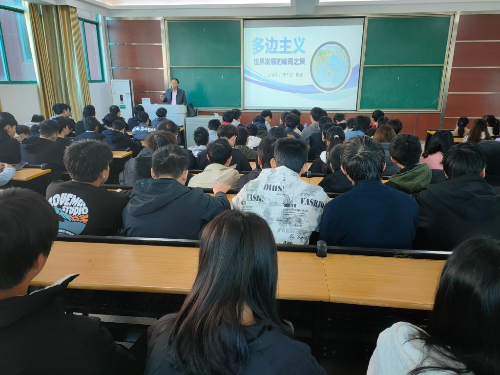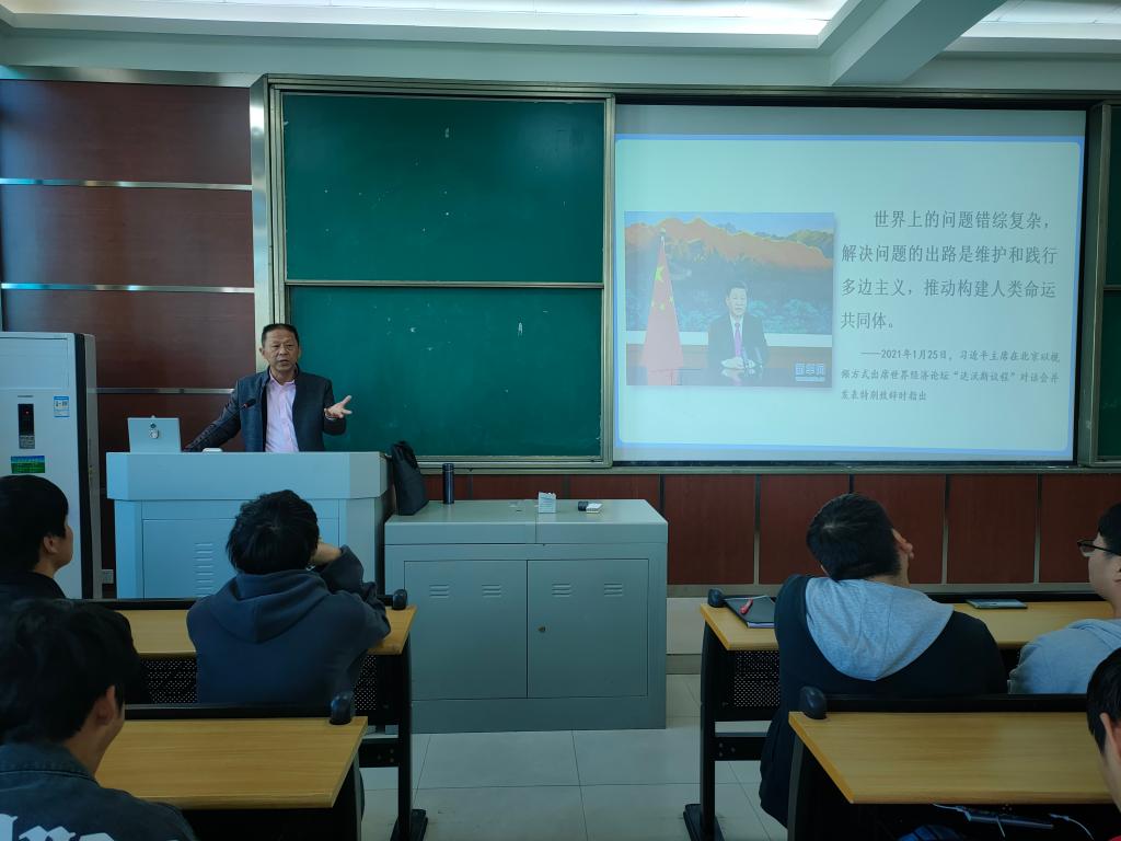 思政课上,李军民教授以“多边主义——世界发展的破局之策”为题,围绕“当今时代面临的四大课题、照亮前行之中的多边主义、践行多边主义的中国行动”三个方面深刻解读了当前多边主义时代背景、多边主义内涵以及多边主义下的中国行动。