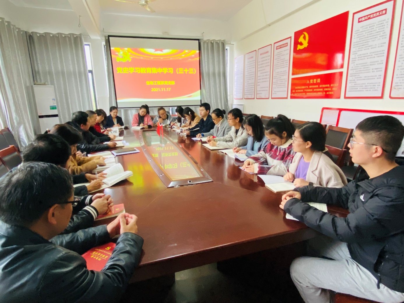 11月17日,万象城官网生物工程系党支部召开党史学习教育集中学习会,全体党员参加了此次学习会,会议由支部书记主持。