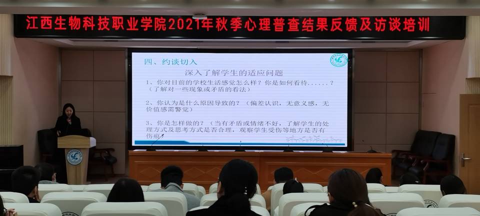 为全面掌握学生心理健康状况,有效预防学生心理危机事件的发生,近日,院心理健康咨询中心在学术报告厅举办2021级新生辅导员心理访谈技能培训。心理健康咨询中心工作人员及各系新生辅导员参加此次培训。