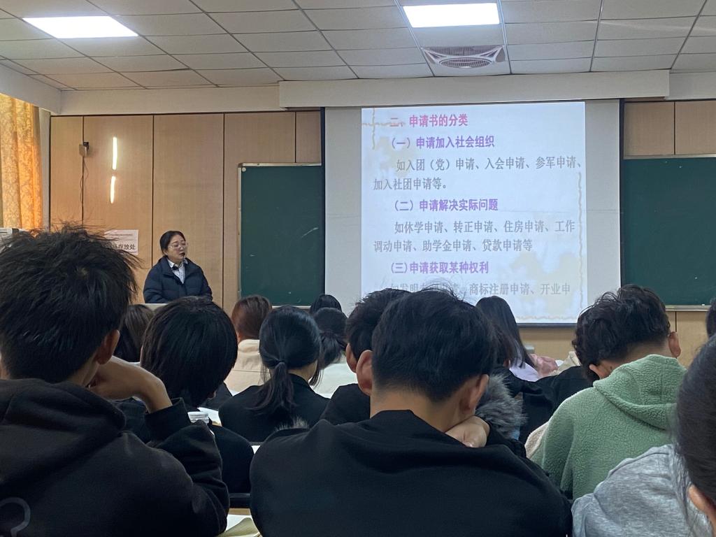 为提升教师专业素养,提高教师教育教学水平,12月1日上午,基础部开展公开课示范教学活动,主讲教师琚丽华副教授讲授了一堂《应用文写作》公开课,基础部相关教师参与了此次公开课学习观摩。