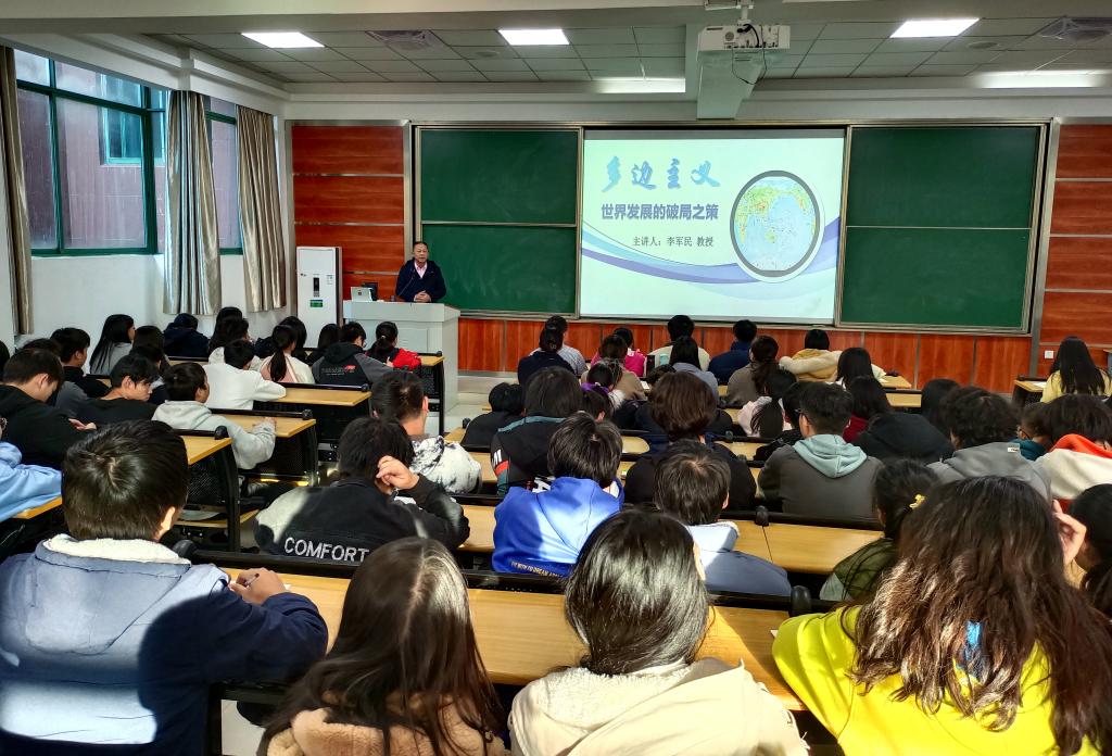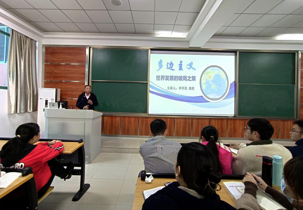 12月2日,学院党委委员、省农干校副校长李军民教授走进教育艺术系,为师生们讲授了一场题为《多边主义:世界发展的破局之策”》的精彩讲座。该系党支部党员教师及2021级部分学生共120多人参加了本次形势与政策课。
