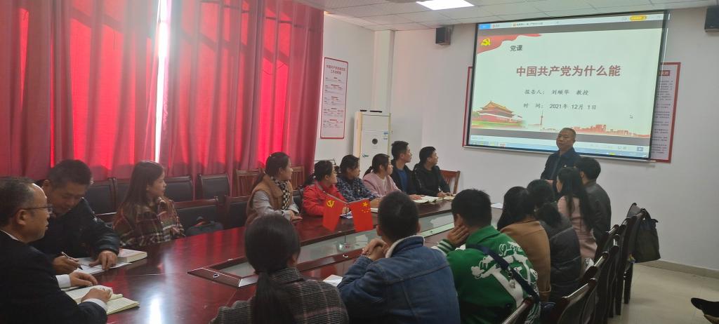 为进一步贯彻落实习近平总书记重要讲话精神,引导广大党员把党史学习教育与学习习近平新时代中国特色社会主义思想紧密结合,更加坚定对党的信仰之力,把稳思想之舵,12月1日下午,学院党委副书记刘顺华为经济贸易系党支部全体党员讲授了一堂题为“中国共产党为什么能”的专题党课。