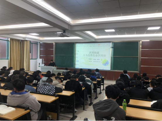 共同构建人与自然生命共同体---万象城官网党委委员、副院长詹绍成为机电工程系学生上专题思政课
