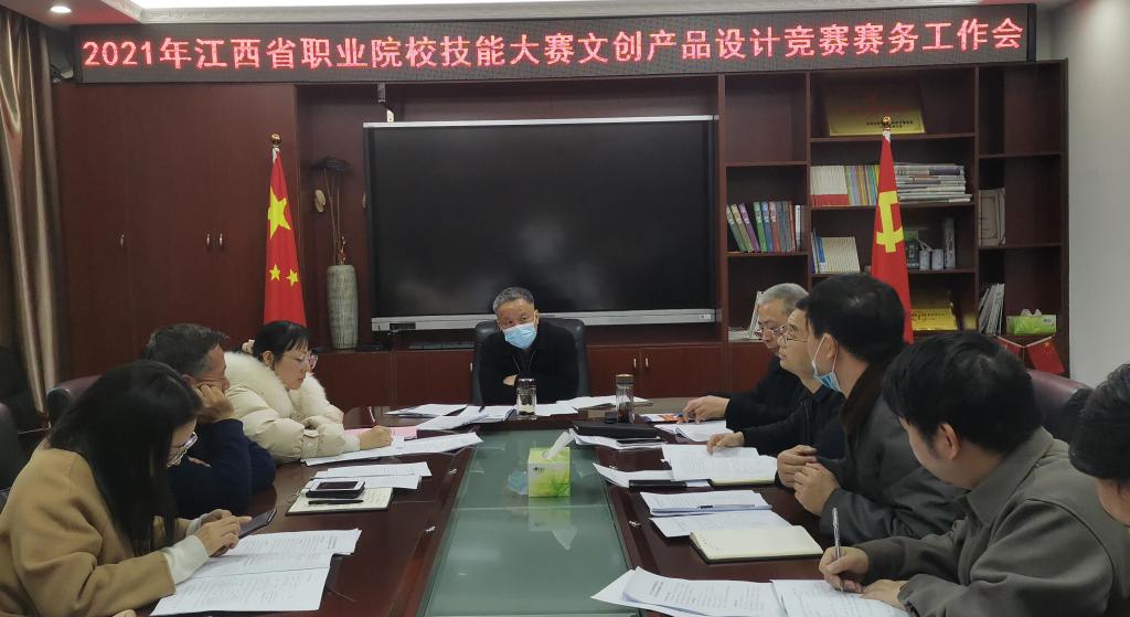 为提高万象城官网承办2021年全省职业院校技能大赛赛事活动的组织能力,提升赛事的品质,强化工作成效,确保赛事活动圆满、安全、顺利地完成,12月21日,在知行楼党委会议室召开了江西省职业院校技能大赛文创产品设计竞赛赛务工作会,院党委书记、院长曹端荣,院党委副书记刘顺华,各处室负责人参加了此次会议。