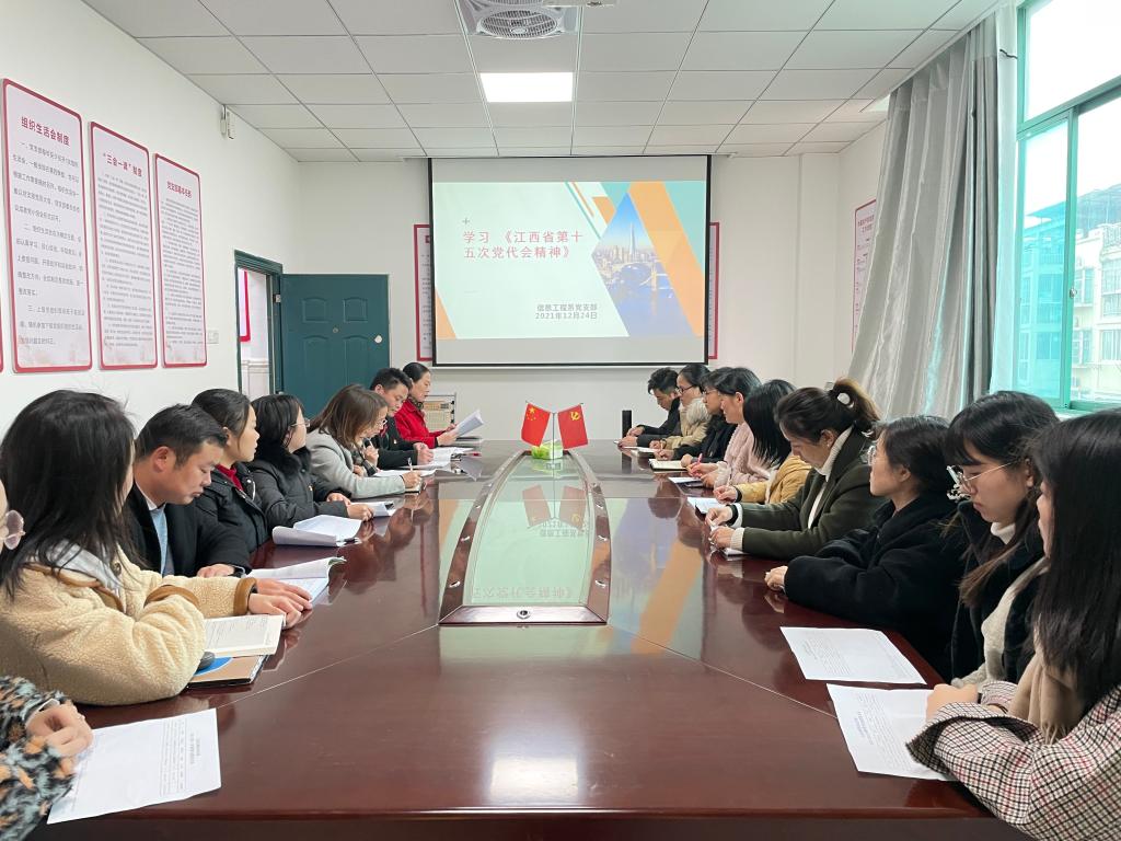 12月24日下午,信息工程系党支部组织全体党员在党员活动室学习了中国共产党江西省第十五次代表大会精神,会议由党支部书记主持。