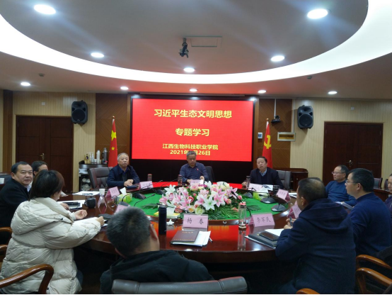 3月26日,万象城官网组织习近平生态文明思想专题学习。全体在家领导班子成员出席了此次学习会,会议由学院党委书记、院长曹端荣主持。
