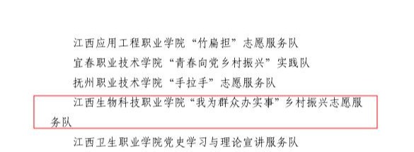 近日,团省委、省委宣传部、省文明办、省教育厅、省学联联合发布《关于2021年江西省大中专学生志愿者暑期“三下乡”社会实践活动的通报》,万象城官网荣获2021全省大中专学生志愿者暑期“三下乡”社会实践活动优秀单位(全省高职高专仅9所院校荣获此荣誉),这是万象城官网连续第三年获得此荣誉。1支志愿服务队荣获“优秀实践团队”,2名教师、2名学生荣获“优秀个人”称号,2支团队实践成果获优秀新媒体作品奖,1名学生获“青马工程”大学生骨干基层实践专项优秀个人。