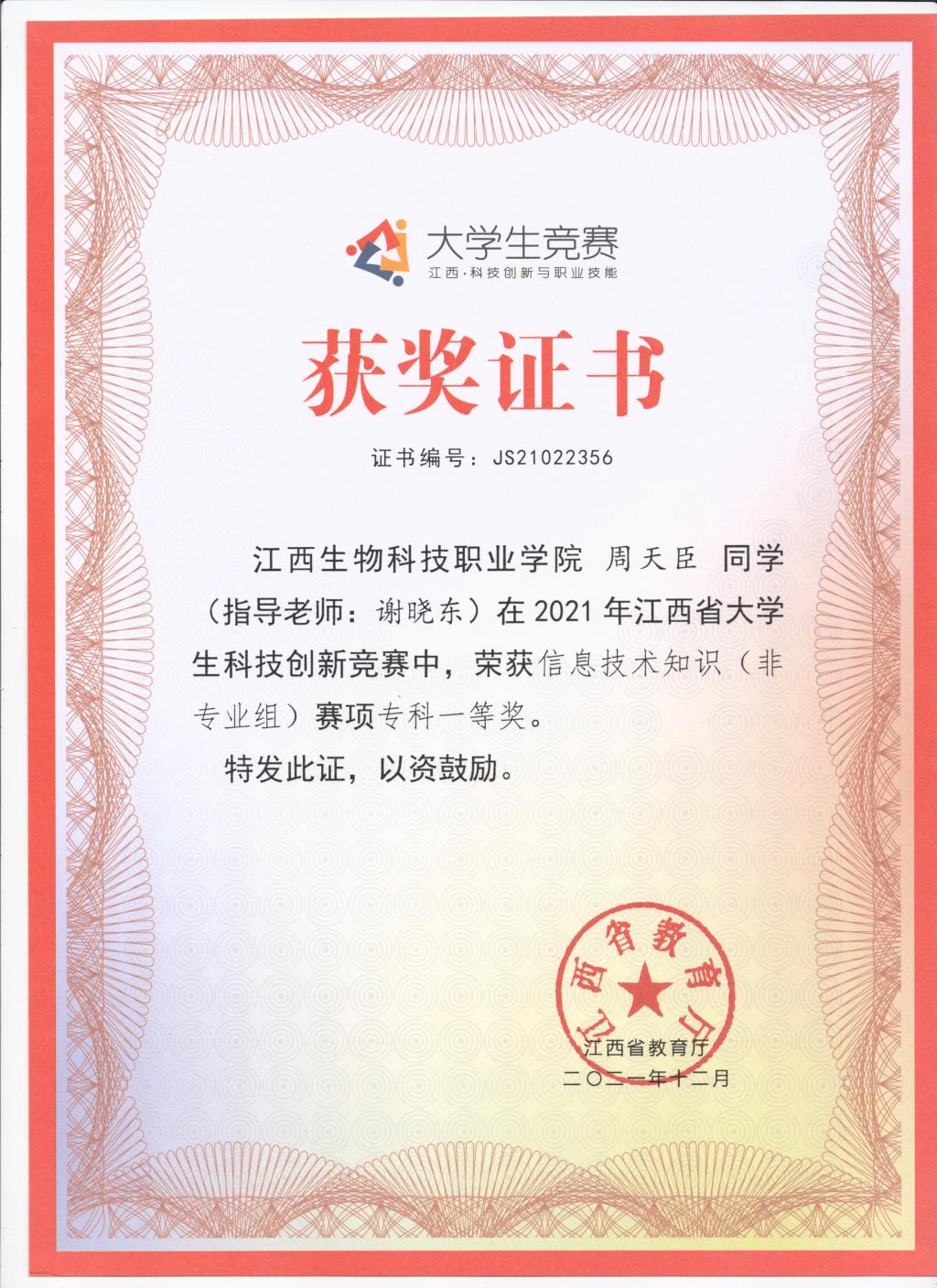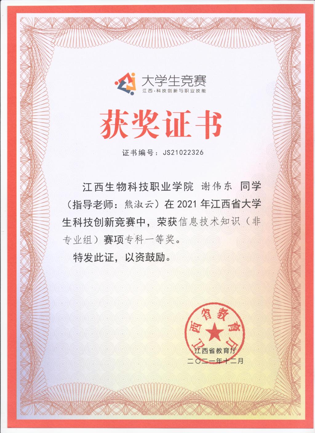 学院在2021年江西省大学生科技创新竞赛——信息技术知识赛荣获专科非专业组团体总分第二名的优异成绩。