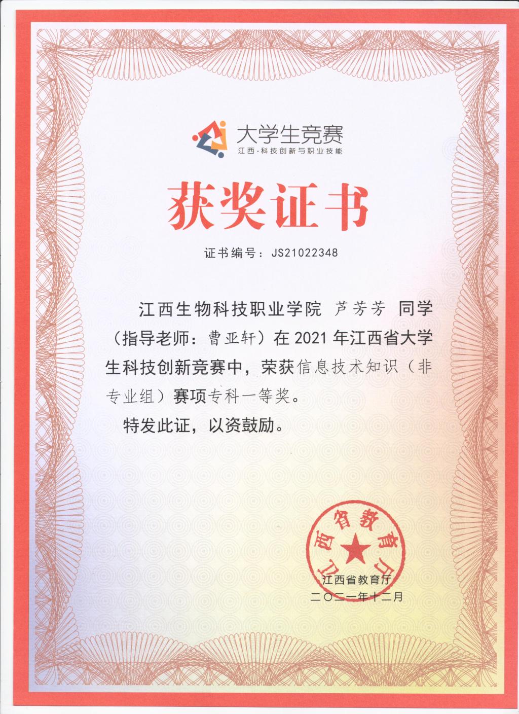 喜报:学院在“2021年江西省大学生科技创新竞赛——信息技术知识赛”中荣获专科非专业组团体总分第二名