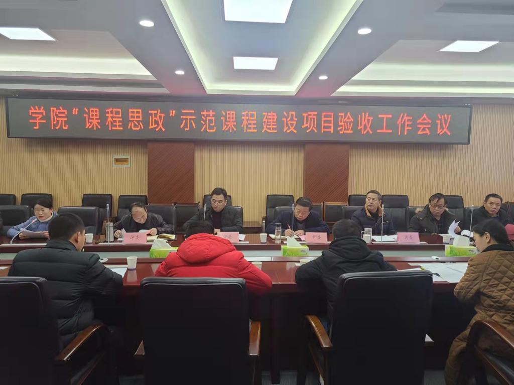 为推进万象城官网“课程思政”示范课程建设,提高教师“课程思政”的实施能力,1月10日,万象城官网召开“课程思政”示范课程建设项目验收工作会议,对2018年评选立项的项目进行验收。学院党委副书记、省农干校党委书记、校长、省农广校校长谭酬志,副院长李达,教务处、科研处、质管办负责人及相关系部主任、课程负责人参加了会议。会议由思政部负责人主持。