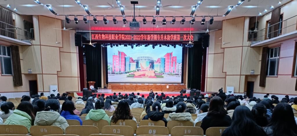 2月21日,学院继续教育处在大礼堂召开2021-2022学年新学期专升本助学班第一次学生大会。院自考助学班全体学生和继续教育处工作人员参加了大会。