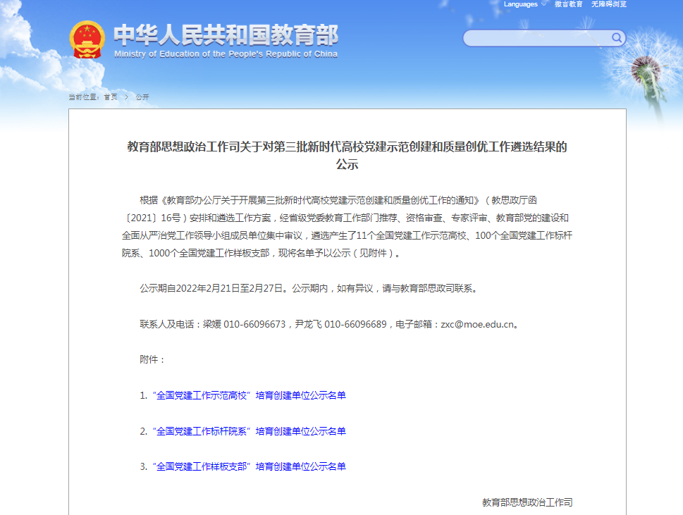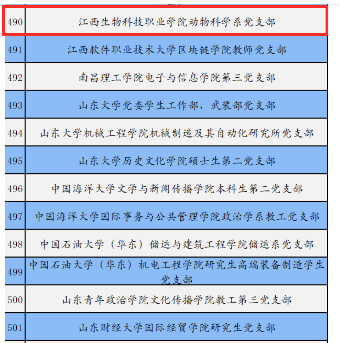近日,教育部对“第三批新时代高校党建示范创建和质量创优工作”遴选结果进行了公示,万象城官网动物科学系党支部成功入选第三批“全国党建工作样板支部”培育创建单位。此次遴选共产生了11个全国党建工作示范高校、100个全国党建工作标杆院系、1000个全国党建工作样板支部。江西省共有25个高校党支部入选全国党建工作样板支部,其中高职院校共有5个党支部入选。