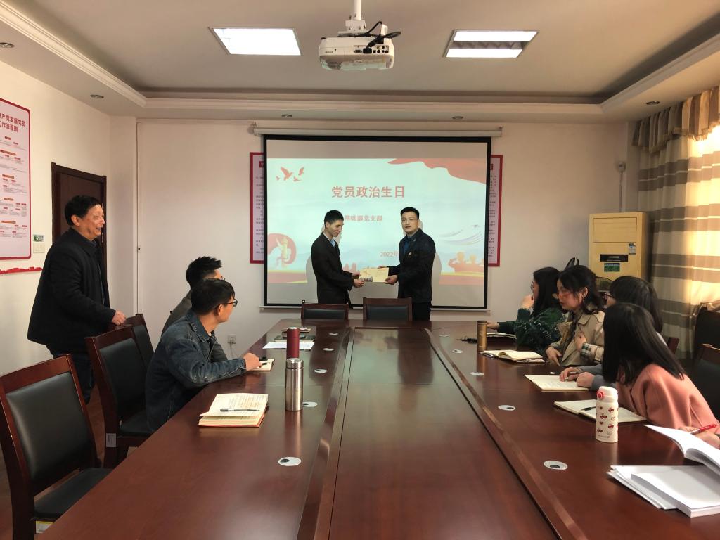 会议结束前,党支部为3月份加入党组织的1名党员庆祝政治生日,支部书记向该党员赠送生日贺卡,送上生日祝福。会议在全体党员庄严的宣誓声中结束。