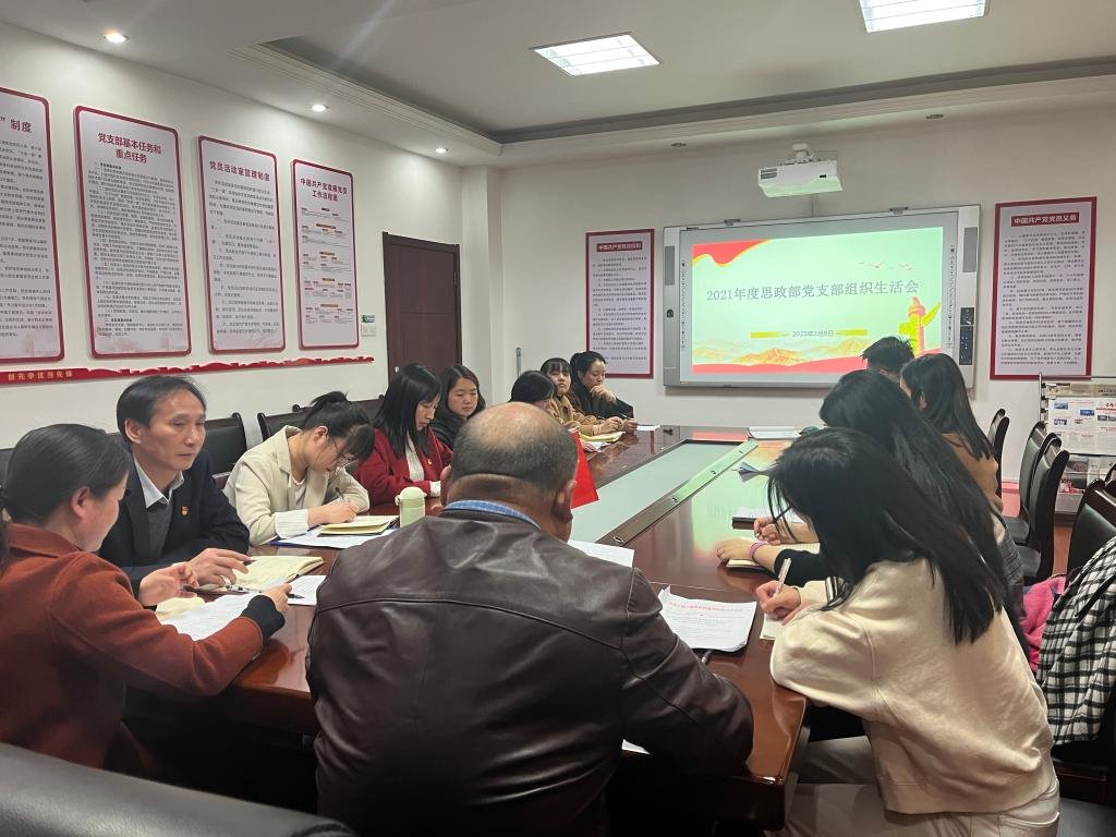 3月9日,思政部党支部召开2021年度组织生活会,支部全体党员参加会议,会议由支部书记主持,党政办督导员到会指导。
