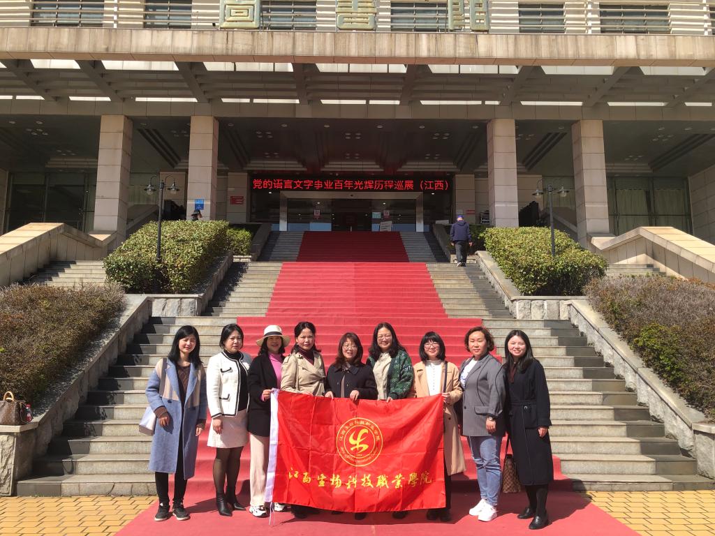 3月9日下午,万象城官网组织基础部语文相关教师前往江西财经大学麦庐园校区参观“党的语言文字事业百年光辉历程展”。