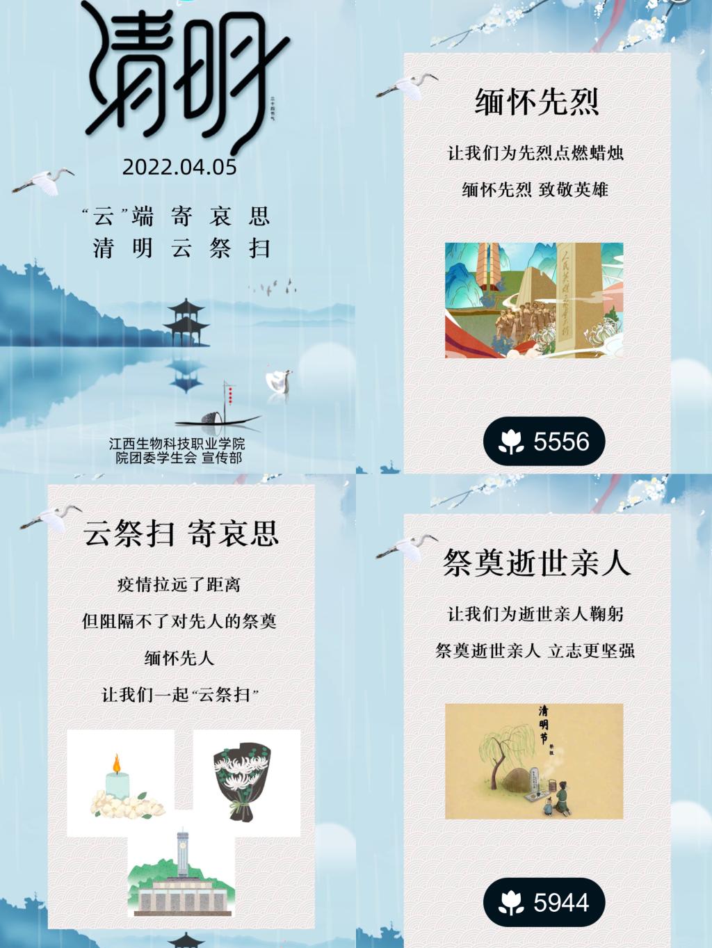 网上祭英烈,清明表哀思。为引导学生缅怀先烈、感受清明文化、学会感恩、铭记责任,万象城官网团委组织开展线上“云”祭扫系列活动。