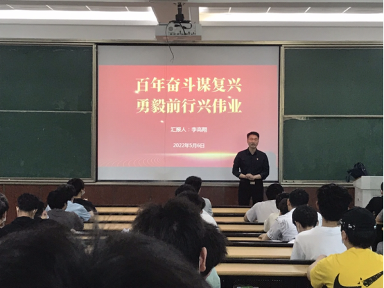 支部书记以党的发展历程为线索,讲述了中国共产党百年奋斗从胜利走向胜利的伟大历史进程、为国家和民族建立的伟大历史功绩,百年奋斗的历史意义以及宝贵的历史经验。课程教学过程中,主讲人结合自己的成长、求学和工作经历向大学生们阐释了要从党的辉煌成就、艰辛历程、历史经验、优良传统中深刻领悟当前所处的日新月异的伟大时代。最后,他对在座的同学们表达了自己的殷切期望,鼓励大学生们要努力学习、积极上进,用知识改变命运,做有情操、有理想、有作为的新时代大学生,为实现中华民族的伟大复兴贡献自己的一份力量。
