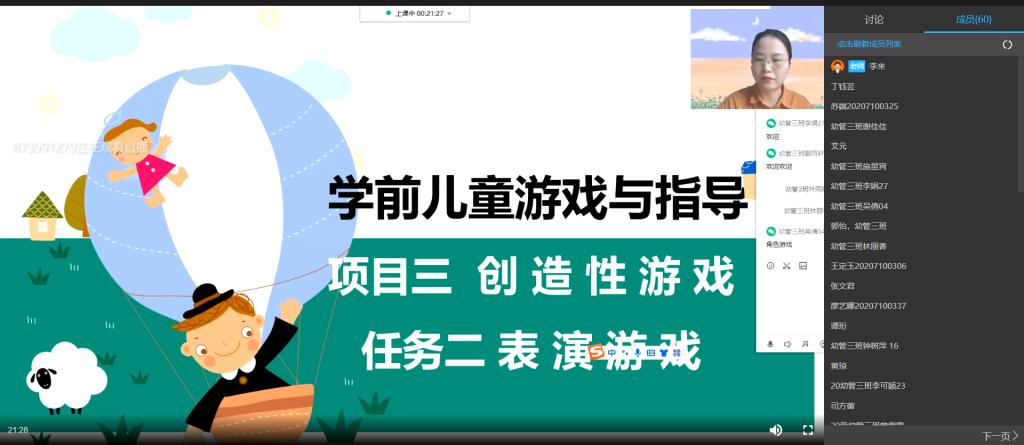 为不断提高教育艺术系教师线上教育教学水平,5月6日下午,教育艺术系于线上开展了公开课教研活动。授课内容为《学前儿童游戏》课程中“表演游戏”相关内容,教育艺术系全体教师参与此次活动。