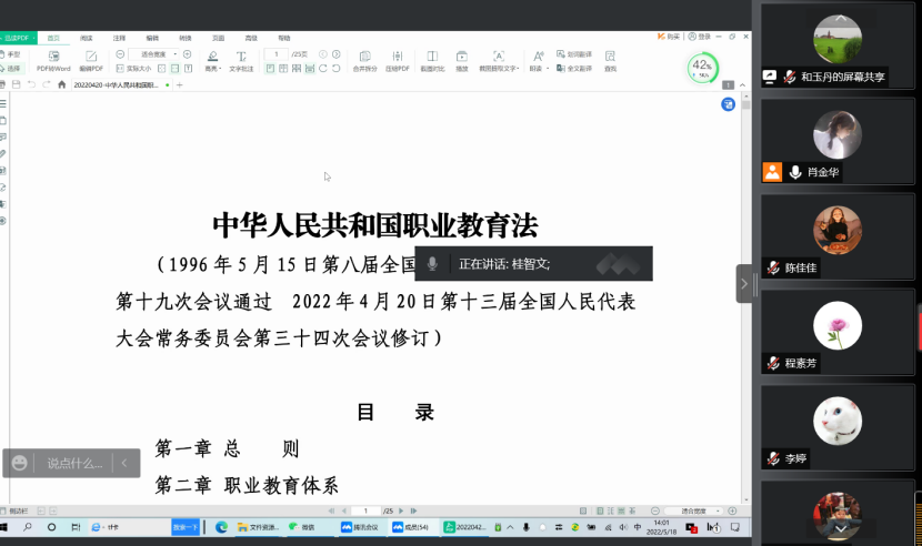 为深入贯彻落实全国职业教育大会精神,做好新职业教育法普法工作,全面准确解读新职业教育法,扎实推动职业教育高质量发展。5月18日,动物科学系组织系部全体教师对新修订的职业教育法进行线上专题学习活动。