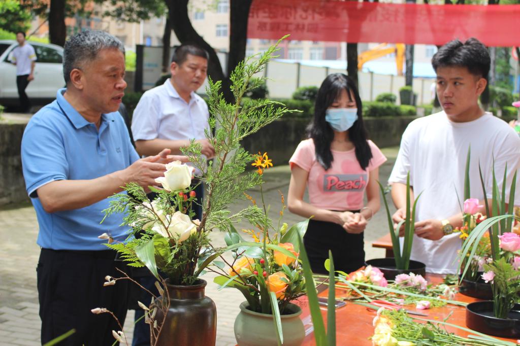 2022年5月25日上午,学院党委书记曹端荣、党委副书记刘顺华、副院长李军民、院领导杨春等在系部领导的陪同下,来到园林工程系第七届职业教育文化周暨第十五届“赢在我能”学生作品展活动现场,先后参观了建筑模型展示区、现场插花技能展示区、手工花卉作品展示区、盆栽作品展示区。在参观学生作品展示区的过程中,院领导对同学们充分利用废旧物品制作各种建筑模型和花艺作品、手工作品,大加赞赏:这种方式即培养了同学们的节能环保意识,又充分与所学专业结合,提高同学们的专业技能,展示了同学们专业学习的成效。