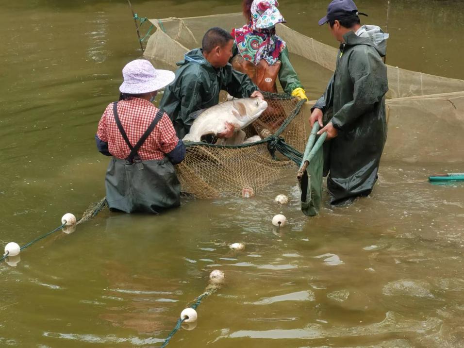 在西罗水产繁殖场,工作人员引导同学们参观了孵化池中正在孵化培育的各种鱼苗,包括草鱼苗、花鲢苗、鳜鱼苗和黄颡鱼苗等,并详细介绍鱼类繁殖操作流程和注意事项。之后,他带领同学们来到了花鲢亲鱼池,在这里,繁殖场负责人和工作人员正在捕捞亲鱼。这是同学们首次实地见到拖网捕鱼和亲鱼催产操作过程,开阔了同学们的视野。