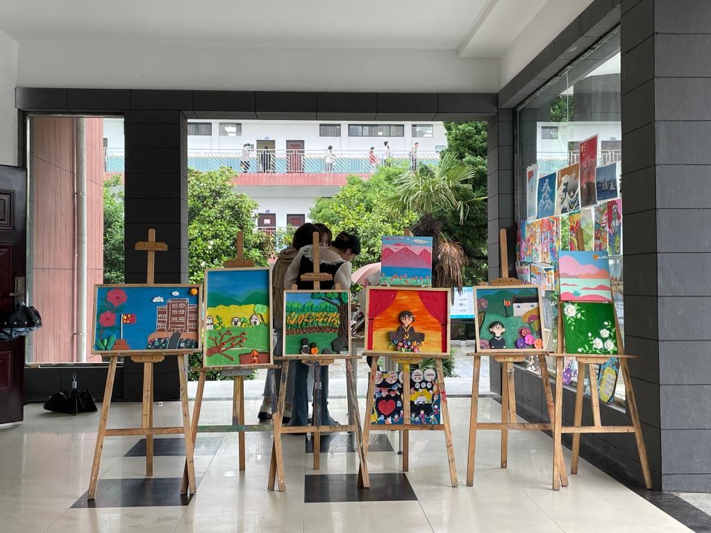 现场展示活动中,在同学们的巧手慧心之下,原本普通的卡纸、橡皮泥、水彩笔等变成了一个个可爱的卡通人物、四季风景、五谷画作等美丽画卷。一幅幅艺术作品都构思巧妙,充分展示了同学们的潜能。