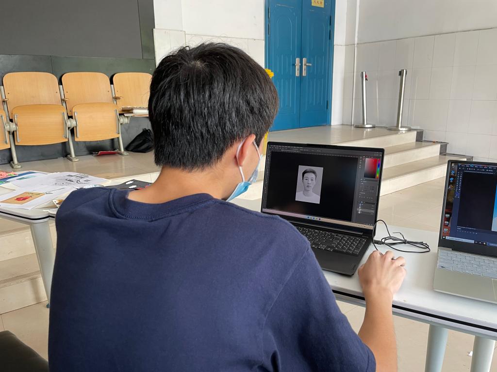 现场修图服务活动中,学生用娴熟的专业操作技能进行现场修图,在原本的图片中进行调整,使得图片更加美观,体现了学生们良好的软件操作技能和图像处理技能。