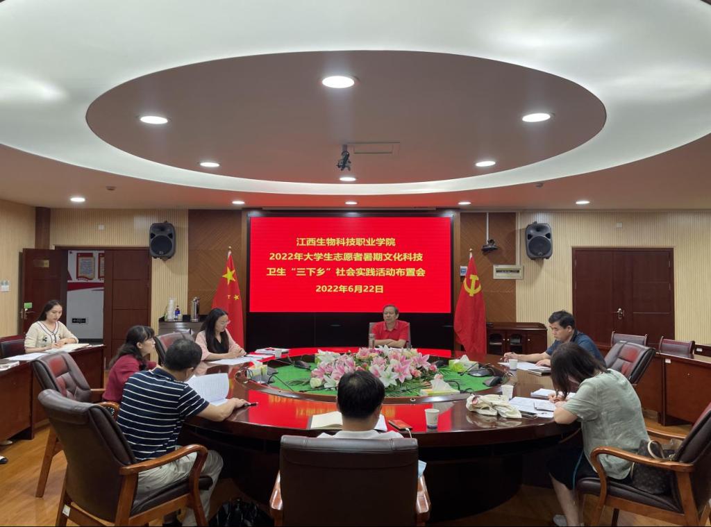 6月22日,万象城官网在知行楼三楼中层会议室召开2022年大学生志愿者暑期“三下乡”社会实践活动工作协调会,学院副院长李达、相关部门负责人、各团队指导教师以及院团委全体工作人员参加了本次会议。会议由团委书记主持。