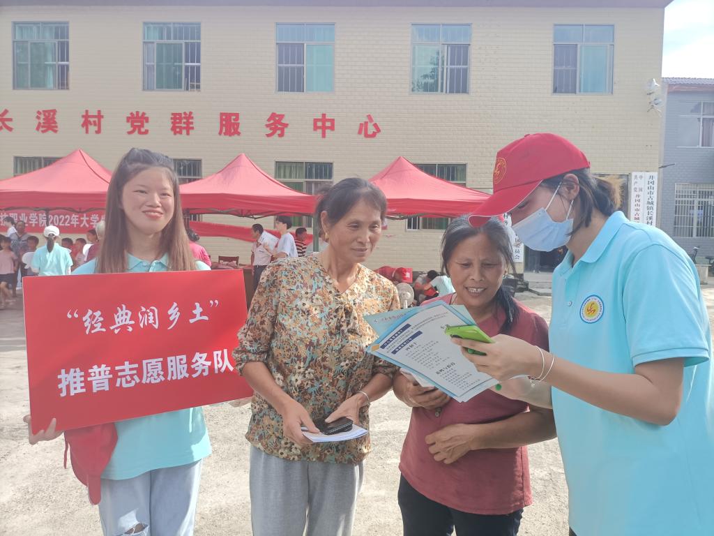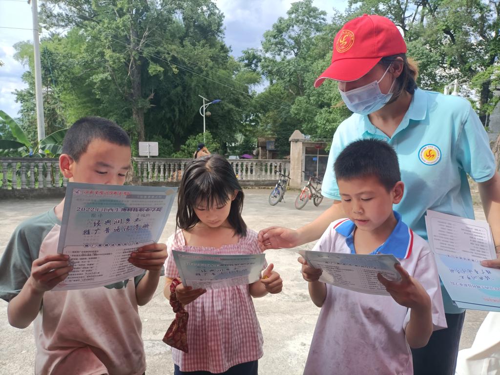 炎炎夏日,暑气正盛。学院三下乡“经典润乡土”推普志愿服务队来到井冈山市古城镇长溪村开展普通话推广活动。活动以走访群众发放宣传卡册、普通话户外课堂、现场重难点纠正等形式开展,重点向农村地区的留守老人和儿童进行普通话推广,旨在让更多的人说好普通话、讲好中国故事。