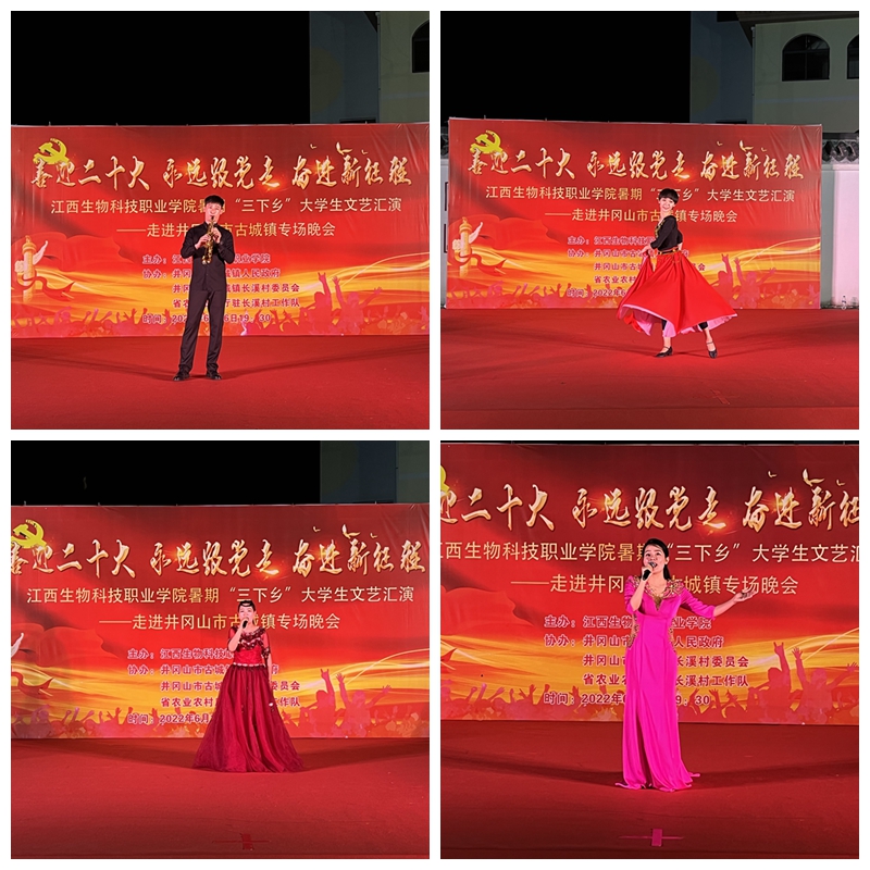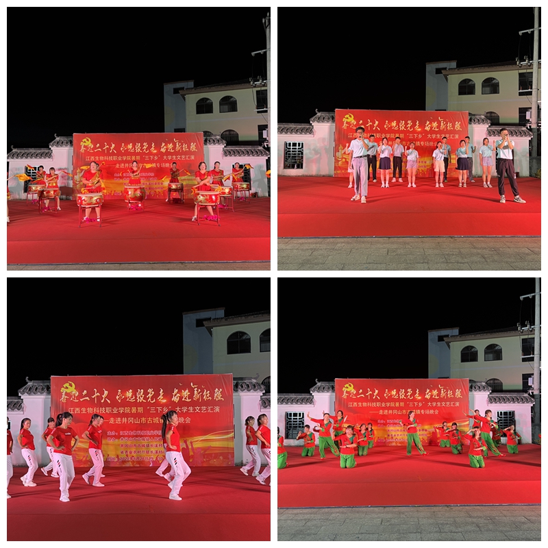 6月26日晚,万象城西甲联赛及意甲暑期“三下乡”大学生文艺汇演走进井冈山市古城镇。学院党委书记、院长曹端荣,古城镇党委书记刘本标,省农业农村厅驻村第一书记,学院党委委员、副院长侯昌芹,学院党委委员、副院长李达,学院相关部门负责同志出席文艺汇演。古城镇政府工作人员、镇村居民200余人观看了演出。晚会上,团队成员们精彩演绎;舞台下,村民们意犹未尽、掌声雷鸣。