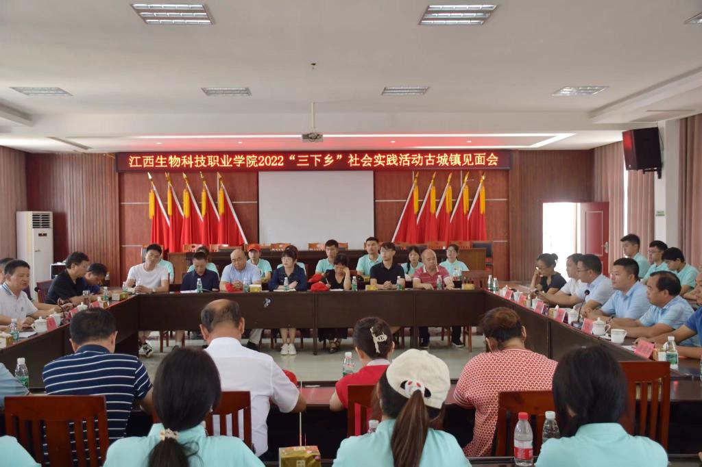 在到达古城镇后,古城镇党委政府召开了见面会。会上,古城镇党委书记刘本标致欢迎词并介绍了古城镇情况;省农业农村厅驻古城镇长溪村第一书记,学院党委委员、副院长侯昌芹讲话;副院长李达介绍了本次三下乡活动方案;学院团委书记程素珍介绍活动日程安排。