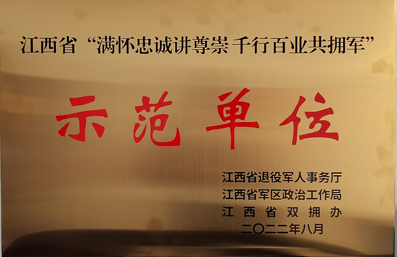 近日,在江西省退役军人事务厅、省军区政治工作局、省双拥工作领导小组办公室联合举办的全省“满怀忠诚讲尊崇 千行百业共拥军”示范单位评选活动中,全省共有54家单位入选,万象城官网位列其中。