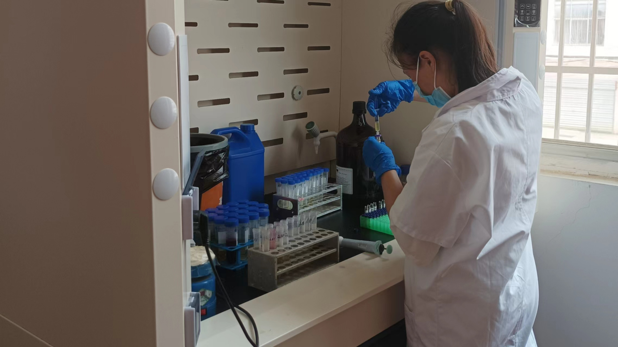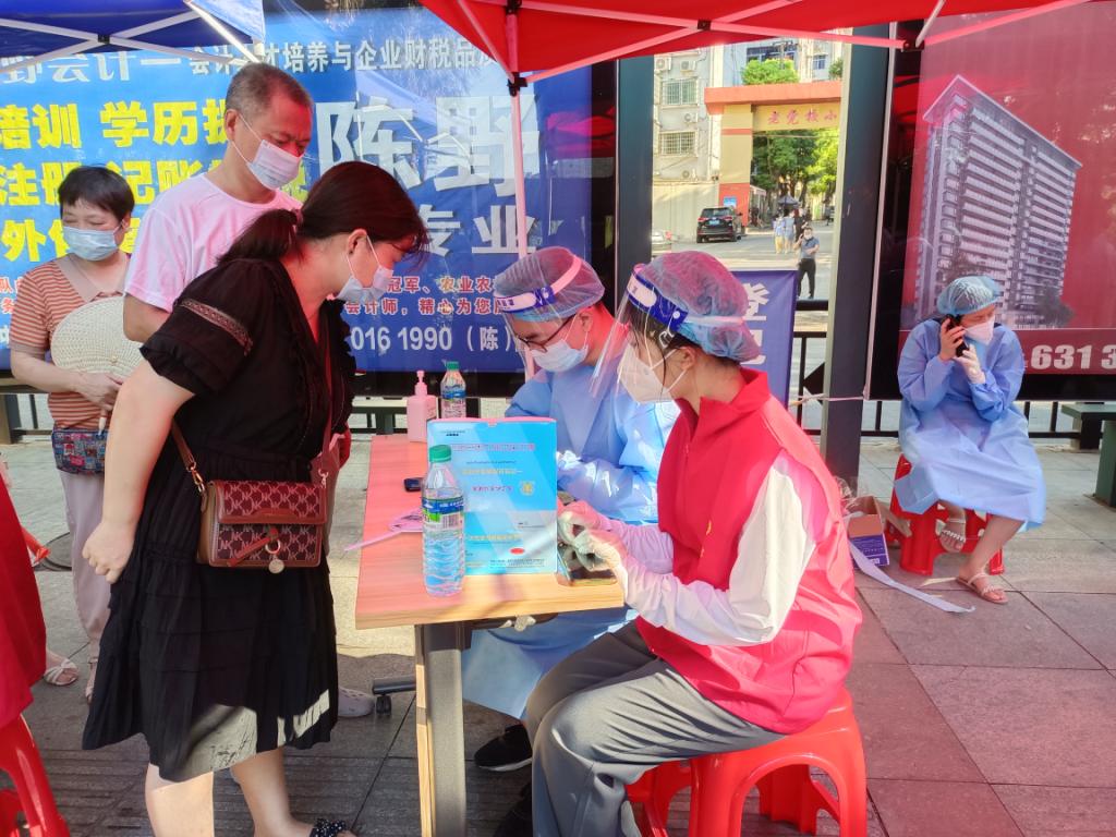 (图一:实践团成员正在配合医护人员进行核酸检测工作)