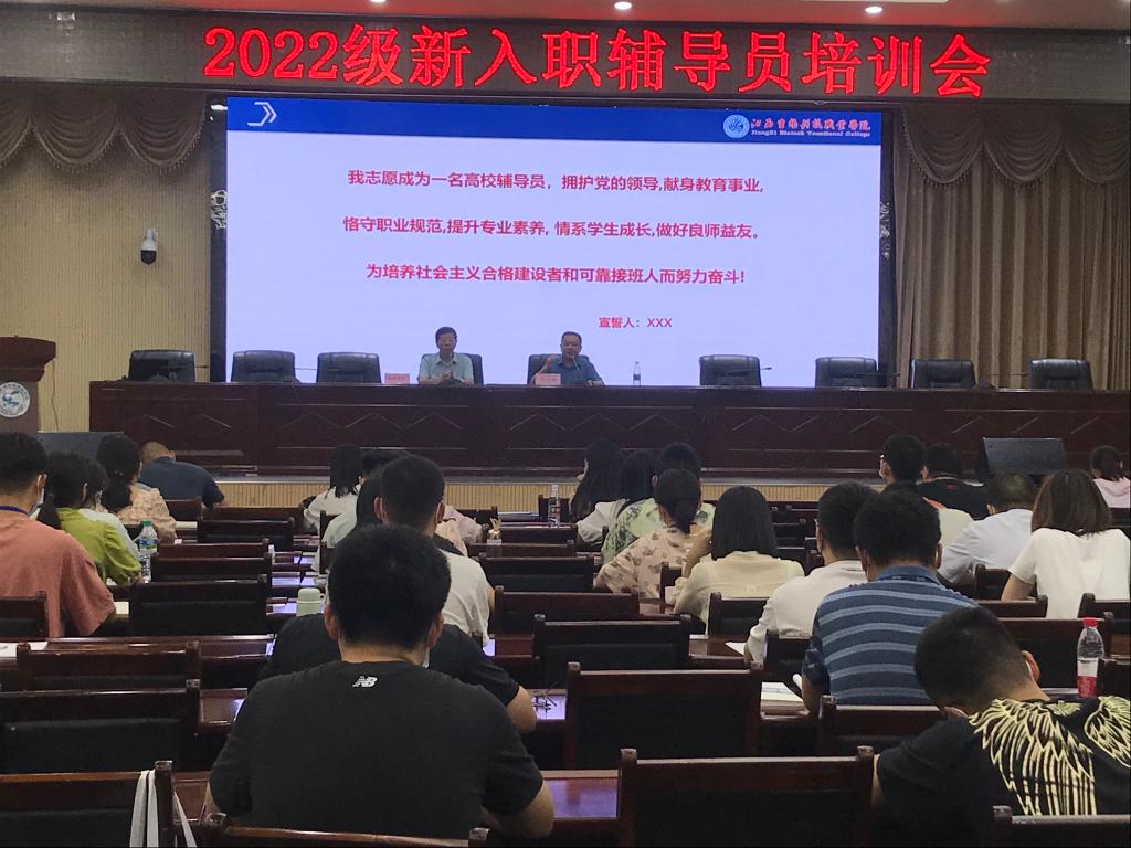 为加强新入职辅导员的岗位认知,快速适应岗位要求。9月27日,万象城官网召开新入职辅导员培训会,学院党委委员、副院长王义林,学工处全体工作人员,各系学管干事及全体新生班辅导员参加了会议。会议由学工处负责人主持。