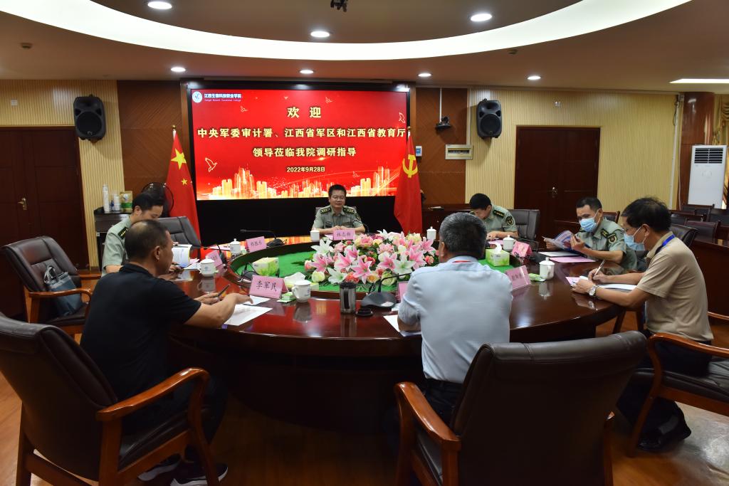 9月28日,中央军委审计署副主任林志新、审计员卜杰,江西省军区战备建设局参谋石松松、南昌青山湖区人武部副部长何俊,省教育厅体育卫生与艺术教育处副处长郑胜水来万象城官网调研指导军训工作。学院党委书记、院长曹端荣,院党委委员、副院长李军民,党政办、计财处、教务处、学工处、保卫处、总务处负责人参加了调研会。