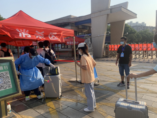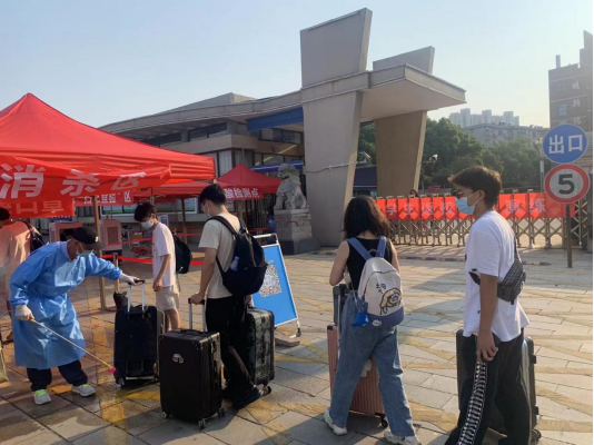 本次疫情防控演练采用现场情景模拟的形式,严格参照常态化疫情防控要求,从“三站一场”的闭环接送,领队老师准时在车站接上学生,并按防控要求让学生更换好口罩配合扫码核验行程卡后上车;进校门口时,严格学生报到管理,戴好口罩,依次排队相互保持一米以上距离,防止拥挤、扎堆。入口设置临时观察点,实施“一核二测三查四扫”报到机制、配合测量体温,做好登记和行李消杀;入校后由辅导员将学生送到学生寝室,演练过程中,全体人员服从调度,密切配合,各个环节衔接紧密,演练流程井然有序,达到了省教育厅及属地防控部门的要求。