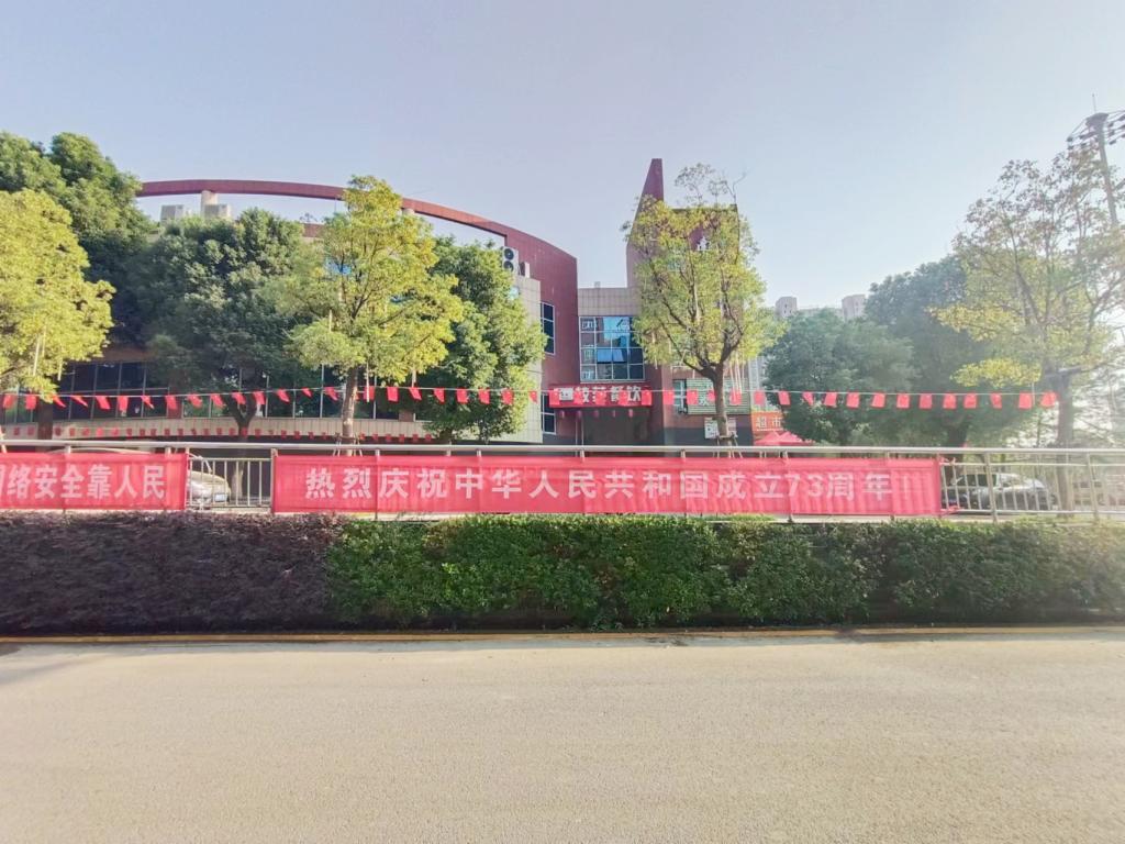 围绕国庆活动主题,学院宣传栏随处可见“热烈庆祝中华人民共和国成立73周年”等标语,LED显示屏上滚动刊播着国庆主题宣传海报、爱国主义教育公益视频和《歌唱祖国》、《我和我的祖国》等爱国曲目。