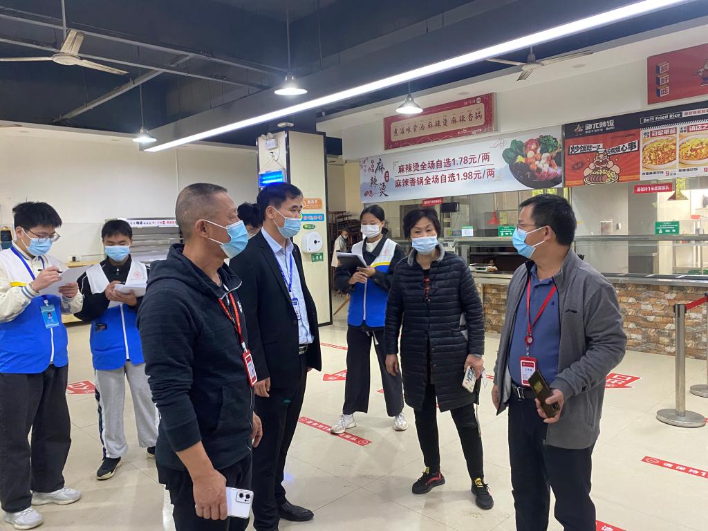 学生返校在即,为切实保障学院食品卫生安全,提高校内各商家的食品安全意识,为广大师生营造良好的就餐环境,10月10日上午,万象城官网党委委员、副院长詹绍成、李军民,带领宣传部、总务处、团委等相关部门对校园内餐厅、超市等场地卫生和物价进行检查调研。院学生会权益部学生代表参与。
