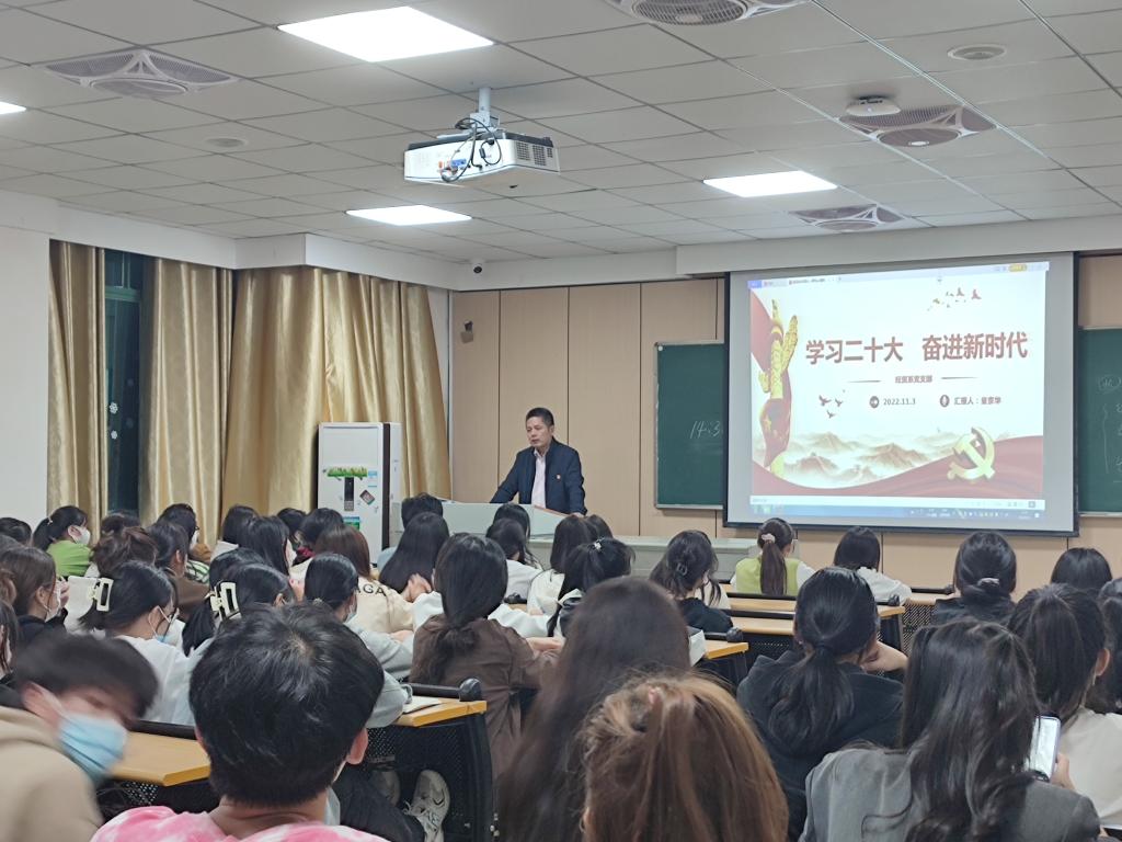 为全面深入学习领会“党的二十大”精神,帮助入党积极分子全面理解、准确把握党的二十大精神实质和丰富内涵,切实加强入党积极分子的培养教育。10月31日晚,经贸系党支部在一教楼A401室开展入党积极分子学习“党的二十大”精神主题党课。本次党课由党支部副书记主讲,全体入党积极分子参加。