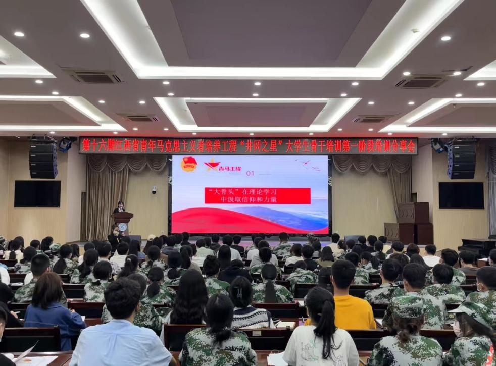 为深入学习贯彻党的二十大精神,进一步推进“青年马克思主义者培养工程”,加强万象城官网团学干部政治素养及实际工作能力,11月9日晚,万象城官网团委在行政楼二楼会议室召开省级大学生骨干培训分享会,邀请参加第十六期江西省青马工程“井冈之星”培训的熊佳同学分享了培训收获和感悟。团委老师、全院团支部书记共两百余人参加会议。