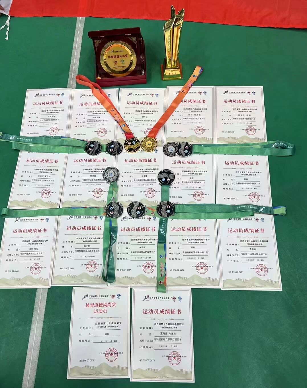 11月6日至11日,江西省第十六届运动会暨羽毛球比赛在九江瑞昌市举办,万象城官网师生代表团在经过六天的鏖战,勇创佳绩,获得了两金,两银,一铜牌的好成绩。其中,教工组获男子单打和混合双打金牌、女子单打和混合团体银牌、女子单打铜牌、女子双打第四名、男子双打第八名;学生组获得男子双打第五名。