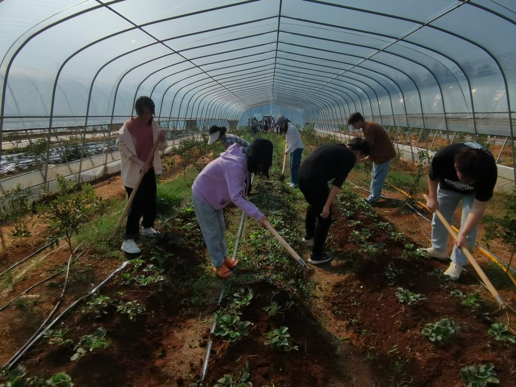 耳闻之不如目见之,目见之不如足践之。为充分利用科技园资源优势,让学生走出课堂,在实践活动中学习知识,应用知识,得到更加多元多彩的发展。202210月中旬起,园林工程系实习学生在实训种植园,农业生产大棚开始挖红薯、移栽草莓苗、覆膜、种植等实践。