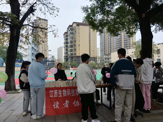 为了让更多同学走进图书馆、了解图书馆、爱上阅读,感受校园书香气息,图书馆和“读者协会”的同学们在校园的主干道上,开设了图书展点,把一年来图书馆最新的图书展示了出来,来浏览的学生络绎不绝,为了便于学生借阅,图书馆开启了展点借书方案,“读者协会”同学们为广大师生提供了热情的服务。