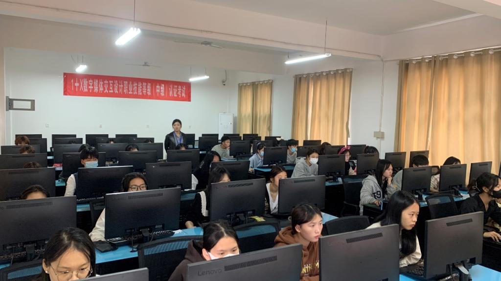 为深入贯彻落实《国家职业教育改革实施方案》,切实推进教育部“1+X证书制度”试点工作,改革创新人才培养和评价模式。教育艺术系于11月26日开展了“1+X”数字媒体交互职业技能等级(中级)认证考试,广告艺术设计、动漫制作及环境艺术设计专业的35名同学参加了此次考试。