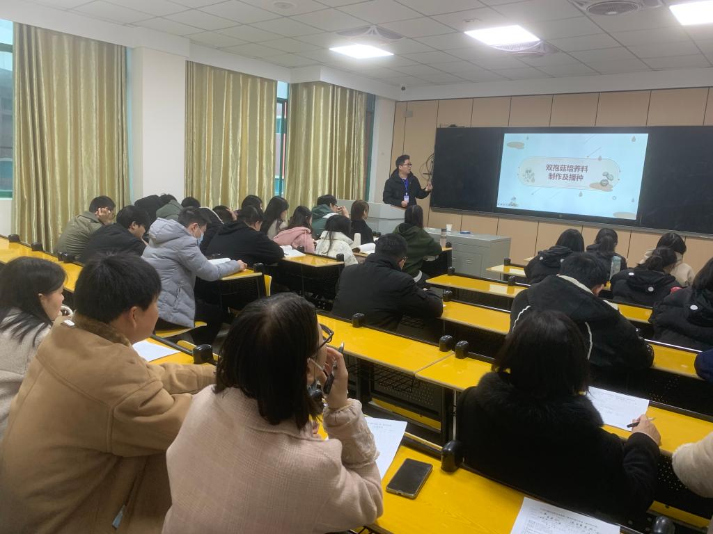 本次活动由王强老师主讲,他图文并茂,生动地介绍了双孢菇培养料制作及播种过程,重点讲解双孢菇发酵过程和方法,语言生动,举例形象,既有细致入微的深度,又有旁征博引的广度,展现了扎实的教学功底。课后,参加听课的老师交流分享了听课心得,大家从理论阐释、师生互动和教学效果等方面对王强老师的讲课进行了教学评议,对王老师扎实的专业知识给予了充分肯定,也对本次课堂教学提出了一些改进意见和建议。