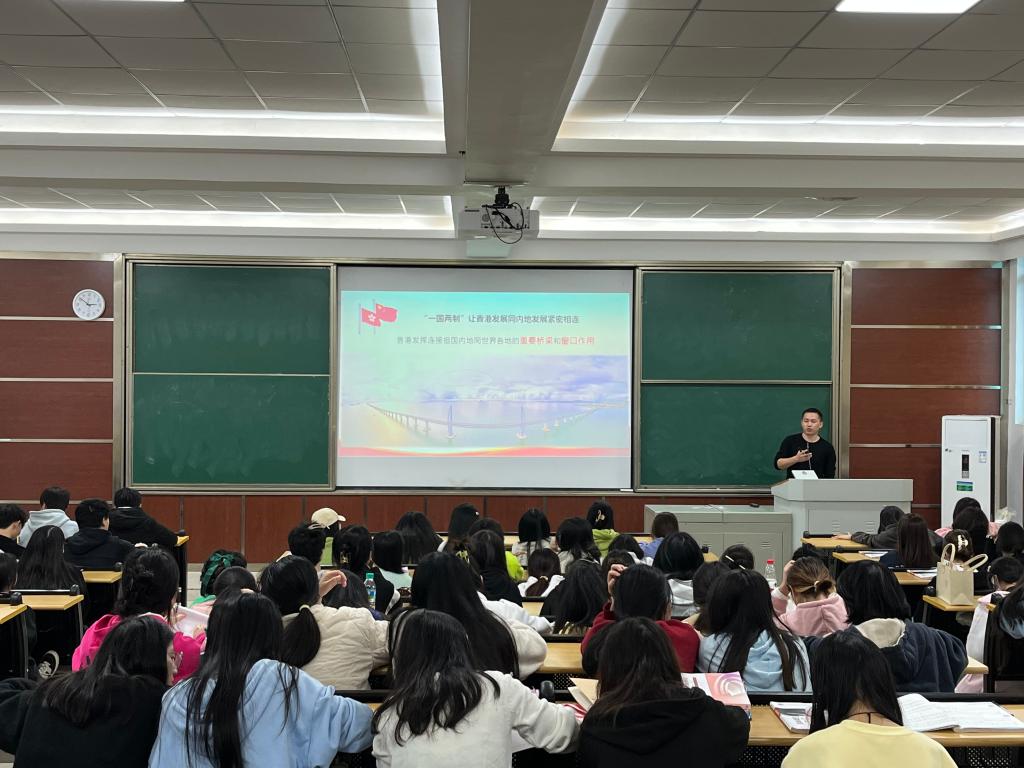 为发挥思政课铸魂育人主渠道作用,推动党的理论创新成果进课堂,培养堪当民族复兴重任的时代新人,11月22日,教育艺术系党支部副书记在明德楼C301为学生讲授了一堂题为“书写‘一国两制’实践新篇章”的形势与政策课程。