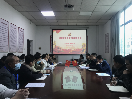 为全面落实习近平总书记在全国高校思想政治工作会议上的重要讲话精神,切实推进支部教师思想政治工作,落实立德树人的根本任务,加强教师对课程思政的应用。12月7日,机电工程系党支部组织全体党员和系部教师在明德楼三楼党支部活动室召开思想政治工作专题研究会议,会议由支部书记主持。