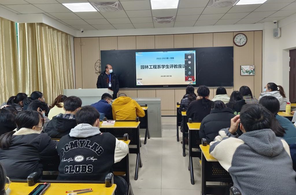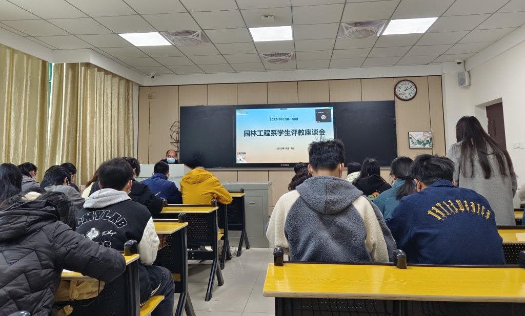 为切实加强学院教学管理和教学质量的监控,发挥学生在教学中的主体作用,不断提升教学质量。12月13日,园林工程系在明德楼B206采用线上和线下相结合的方式开展本学期学生评教座谈会,会议由系主任主持,各教研室主任、2022级、2021级和2020级各班班长和学习委员共40余人参加。