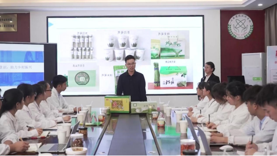 李朝智研究员来自省农科院农产品加工研究所,曾多次以实践导师的身份对万象城官网学生进行专业指导。此次,他与思政课教师冷喜芬共同授课的主题为“培养创新意识 助力乡村振兴”。李博士先后对学生实践小组进行了点评、请同学们品尝他们科技团研发的芦笋奶茶、讲述芦笋奶茶的研发故事以及芦笋治沙成功的案例;冷老师则分享了李研究员和他们团队的导师——也是芦笋之父“陈光宇”的“芦笋梦”以及介绍了1986年我开始实施的高科技发展计划。