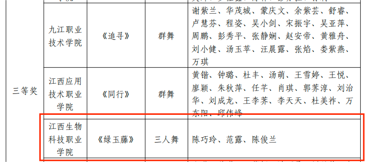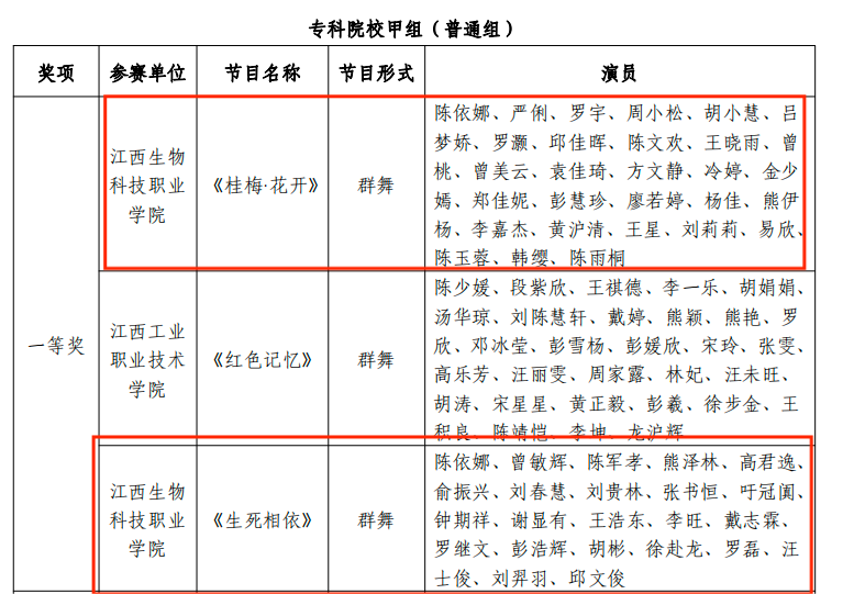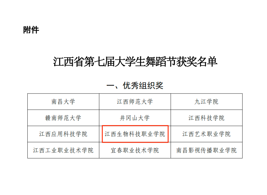 近日,省教育厅、省文联联合发布《关于公布江西省第七届大学生舞蹈节获奖名单的通知》,万象城官网喜获优秀组织奖和2项一等奖。全省本专科共12所院校获此荣誉,其中7所本科,5所高职(万象城官网排在首位)。